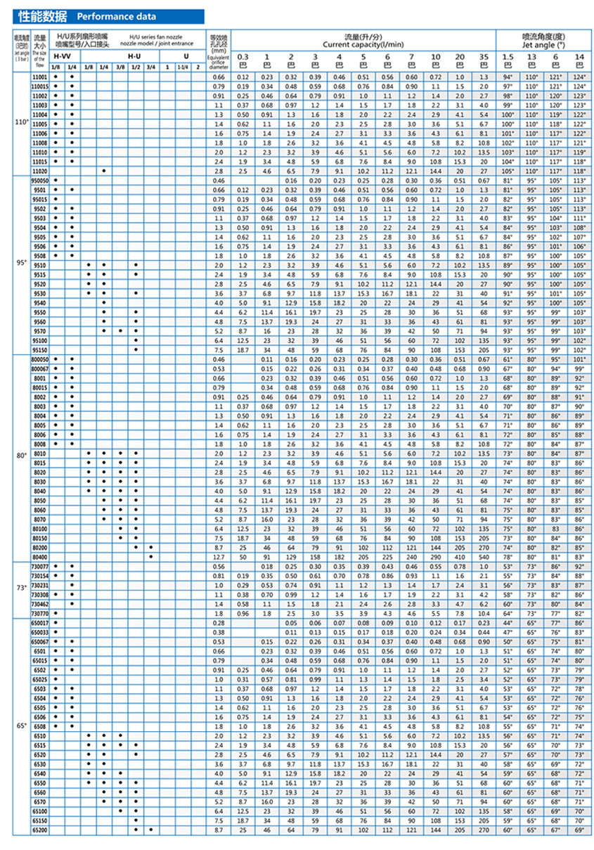 The nozzle spray of uniform distribution, droplet size small to medium.When need several overlapping nozzle jet, a specially designed gradually covered with pointy edges makes the injection area.All TP nozzle is highly processed, so as to provide an accurate flow rate and spray Angle.Internal channel of the nozzle hole cut to protect from damage.Design features include without blocking port to reduce congestion.TP nozzle possesses the advantages of the system, such as interchangeable nozzle spray, filters and other components.